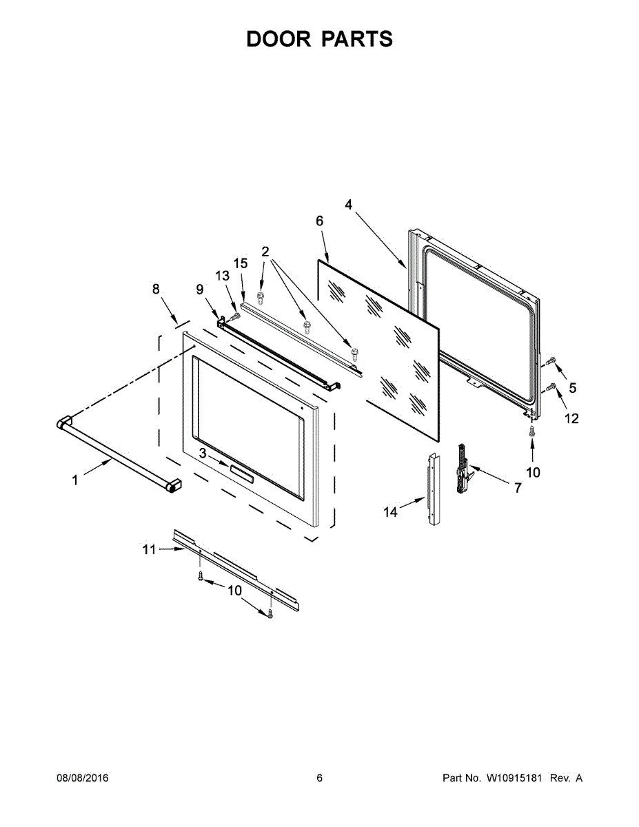 This door liner is the oven's inner door panel that helps protect the door cavity and support the inner glass. Replaces a damaged or worn liner to restore a clean interior surface and proper glass fit. What it does: