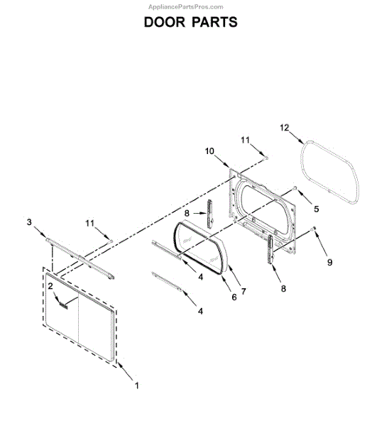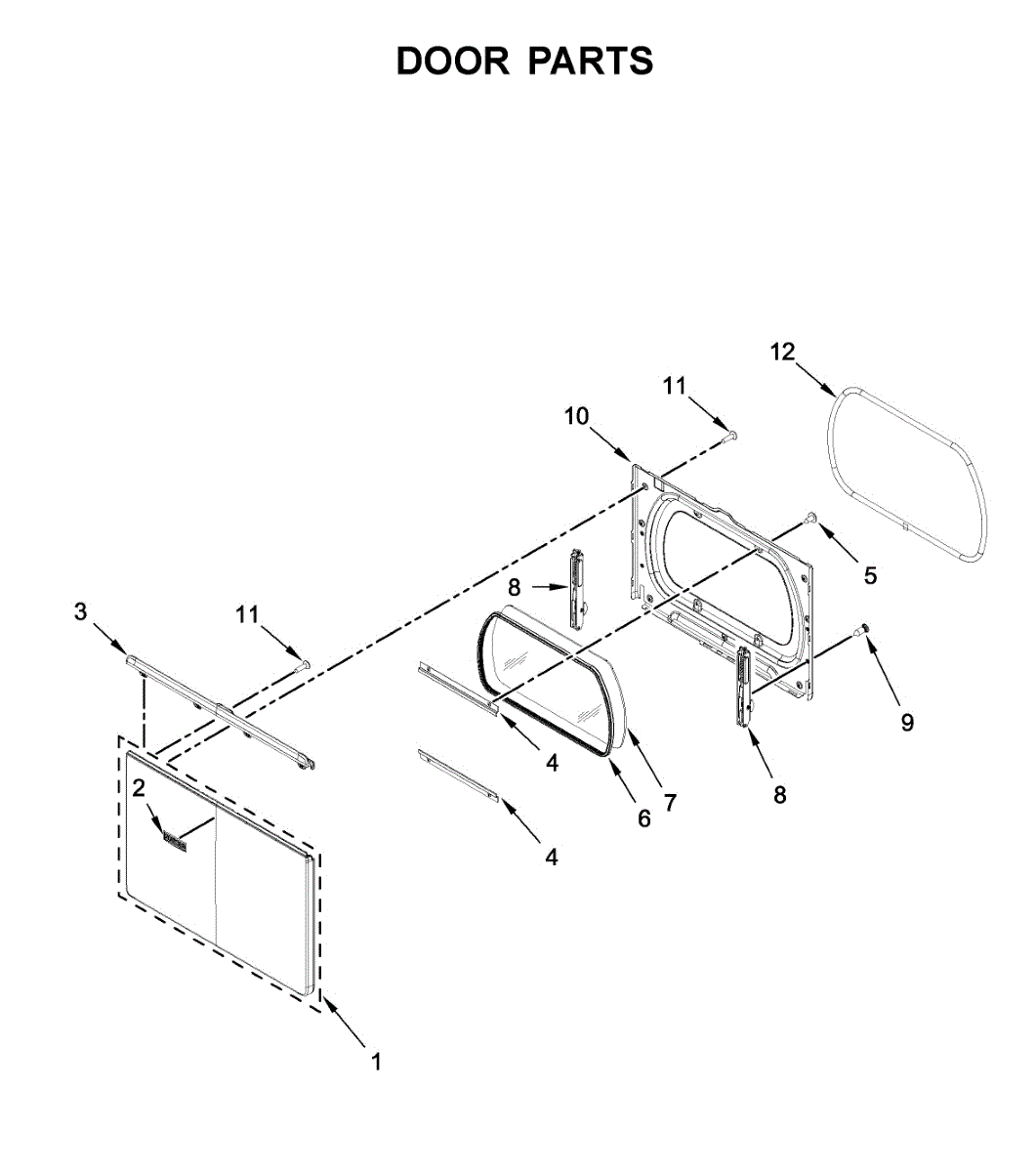 Seals the glass panel in your dryer door to prevent air leaks and maintain drying efficiency. Replace if damaged, melted, or loose. Verify fit by model.