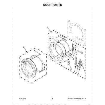 Causes of a bad dryer door catch can include normal wear and tear from frequent use, accidental damage, or deformation of the catch or latch that prevents proper engagement. Over time, the door catch can become loose or break, necessitating replacement to maintain the dryer's performance and safety.