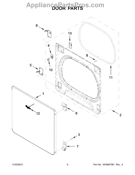 Parts for Whirlpool WED8500DR2: 05 - Door Parts