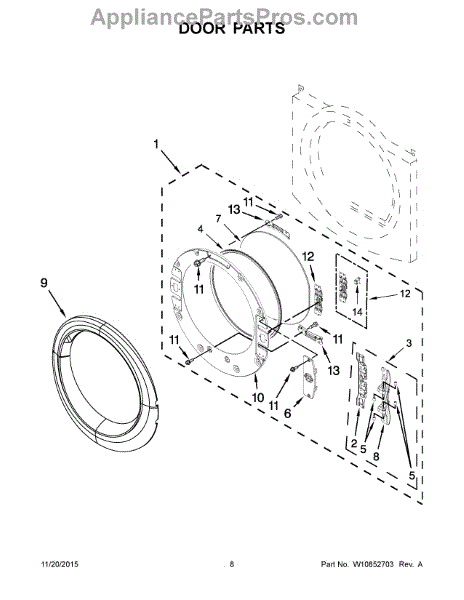 The Door Hinge is an OEM replacement part for Whirlpool dryers. Responsible for securely attaching the dryer door, these hinges play a vital role in usability. Proper functioning of the hinge is crucial for maintaining the door’s alignment and ensuring it closes tightly to retain heat during the drying cycles. Causes of a bad hinge can include normal wear and tear over prolonged use cycles. Excess weight or strain on the door from heavy loads could damage hinge components over time. Symptoms of a bad hinge include: