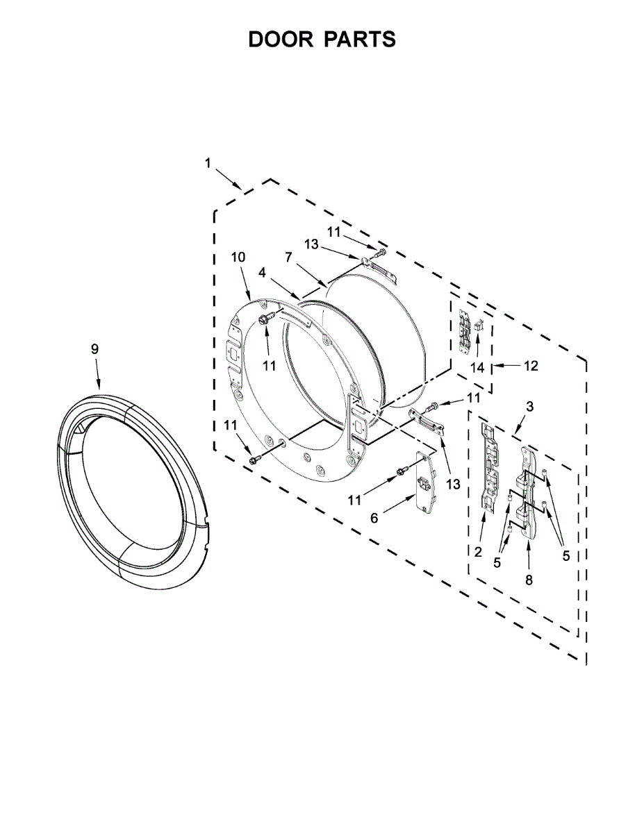 Causes of a bad dryer door catch can include normal wear and tear from frequent use, accidental damage, or deformation of the catch or latch that prevents proper engagement. Over time, the door catch can become loose or break, necessitating replacement to maintain the dryer's performance and safety.