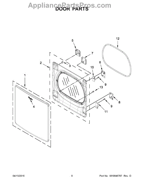 Replaces worn or broken dryer door hinge. Restores proper door alignment and prevents sagging. Confirm compatibility with your model number.