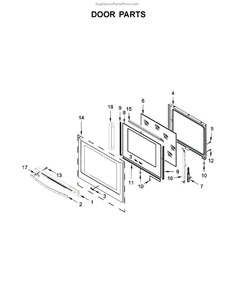 Inner oven door glass panel installs inside the door frame to retain heat and provide visibility. Replace when cracked, shattered, or stained.