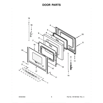 This frame surrounds and supports the window glass in your oven door, keeping the glass secure and aligned. Replace a bent or corroded frame to address loose glass and restore the door's proper fit and clean appearance.