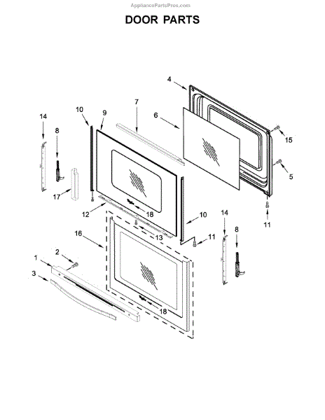 Inner oven door glass panel installs inside the door frame to retain heat and provide visibility. Replace when cracked, shattered, or stained.