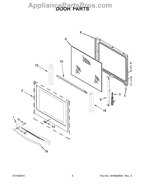 Inner oven door glass panel installs inside the door frame to retain heat and provide visibility. Replace when cracked, shattered, or stained.