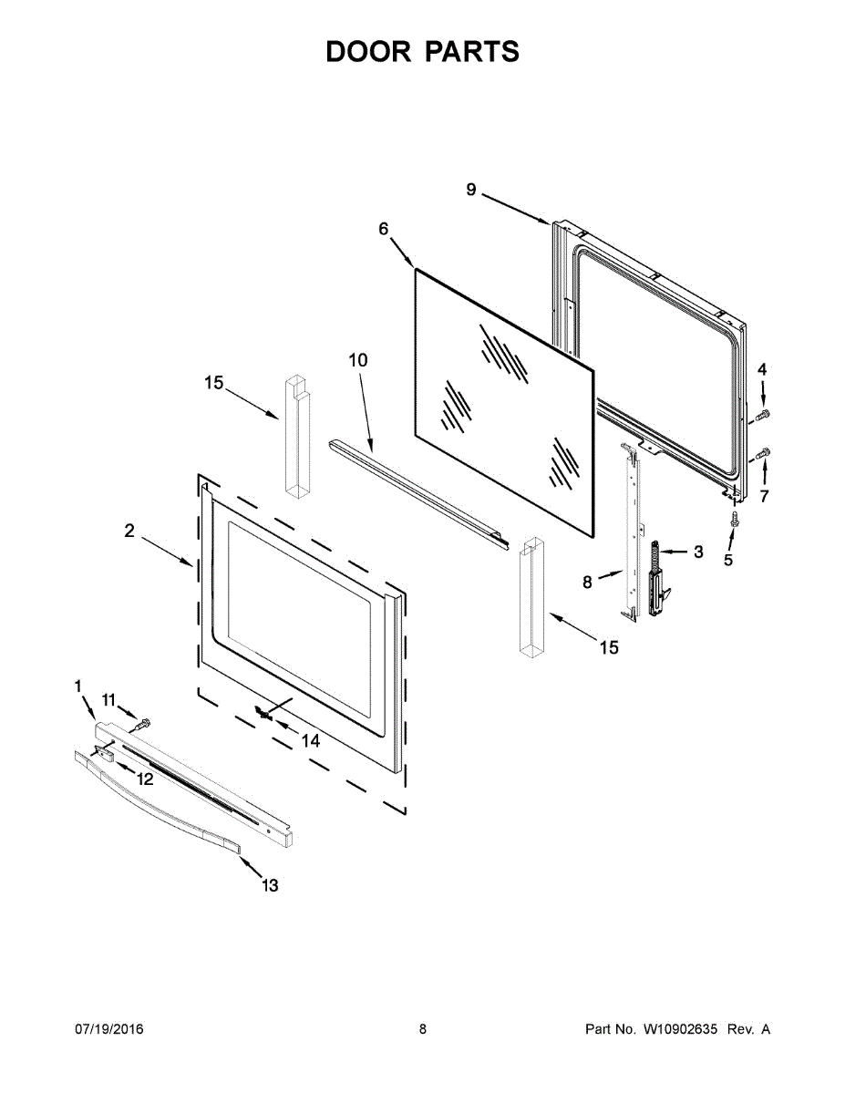 Replaces the cracked, warped, or damaged inner oven door panel. Supports door glass and contains heat. Essential for restoring door structure.