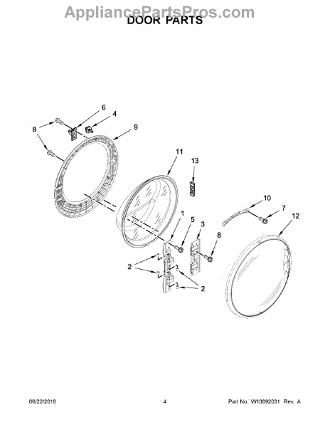 Parts for Whirlpool WFW85HEFW0: 03 - Door Parts
