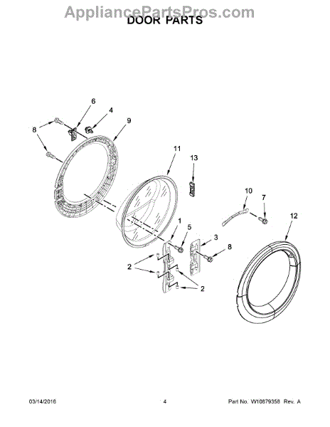 Replacement door hinge for front-load washers and dryers. Attaches door to cabinet for smooth opening and closing. Needed when hinge is cracked or worn.