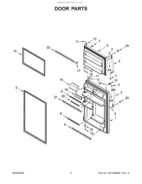 Parts for Whirlpool WRT108FFDB03: Door Parts