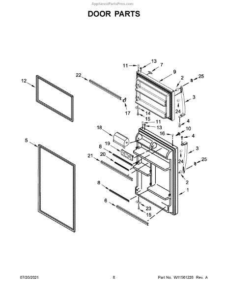 Parts for Whirlpool WRT108FFDM00: Door Parts