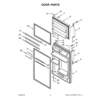 Seals the fresh food door to prevent cold air leaks and maintain temperature. Replace if torn, cracked, or not sealing properly. Verify fit with your model.