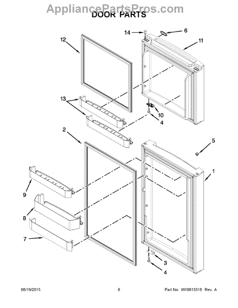 The Door Bin is an OEM replacement part for Whirlpool refrigerators. This bin attaches to the inside of the refrigerator door, providing convenient storage for smaller items like condiments, jars, and bottles.
