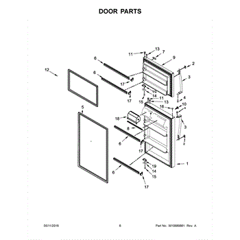 The Door Shelf Rail is an OEM part for Whirlpool refrigerators. This part secures items on the refrigerator door shelves, preventing them from falling out when the door is opened or closed. It provides a barrier that helps keep food items organized and in place.