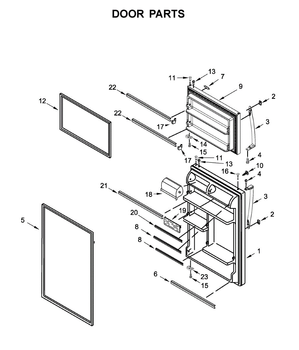 Parts for Whirlpool WRT318FMDM05: Door Parts