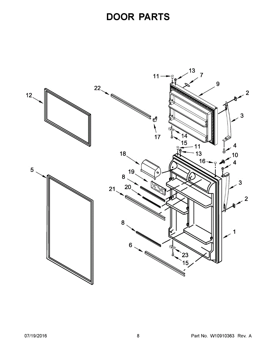 The Door Gasket is an OEM part for Whirlpool refrigerators. It provides an air-tight seal between the refrigerator door and cabinet to ensure cool air is contained within the refrigerator compartment. The gasket is made of flexible yet durable materials designed to compress and flex numerous times without degradation as the door is opened and closed on a daily basis. Causes of a bad door gasket can include cracking, tearing or warping of the material over time and repeated use. Improper closing of the door or excessive force when opening/closing can also damage the gasket. Symptoms of a bad door gasket include: