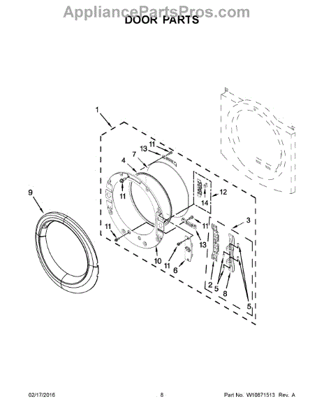 The Door Hinge is an OEM replacement part for Whirlpool dryers. Responsible for securely attaching the dryer door, these hinges play a vital role in usability. Proper functioning of the hinge is crucial for maintaining the door’s alignment and ensuring it closes tightly to retain heat during the drying cycles. Causes of a bad hinge can include normal wear and tear over prolonged use cycles. Excess weight or strain on the door from heavy loads could damage hinge components over time. Symptoms of a bad hinge include: