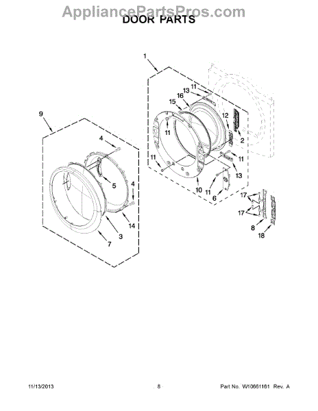 Parts for Whirlpool YWED96HEAC1: 05 - Door Parts