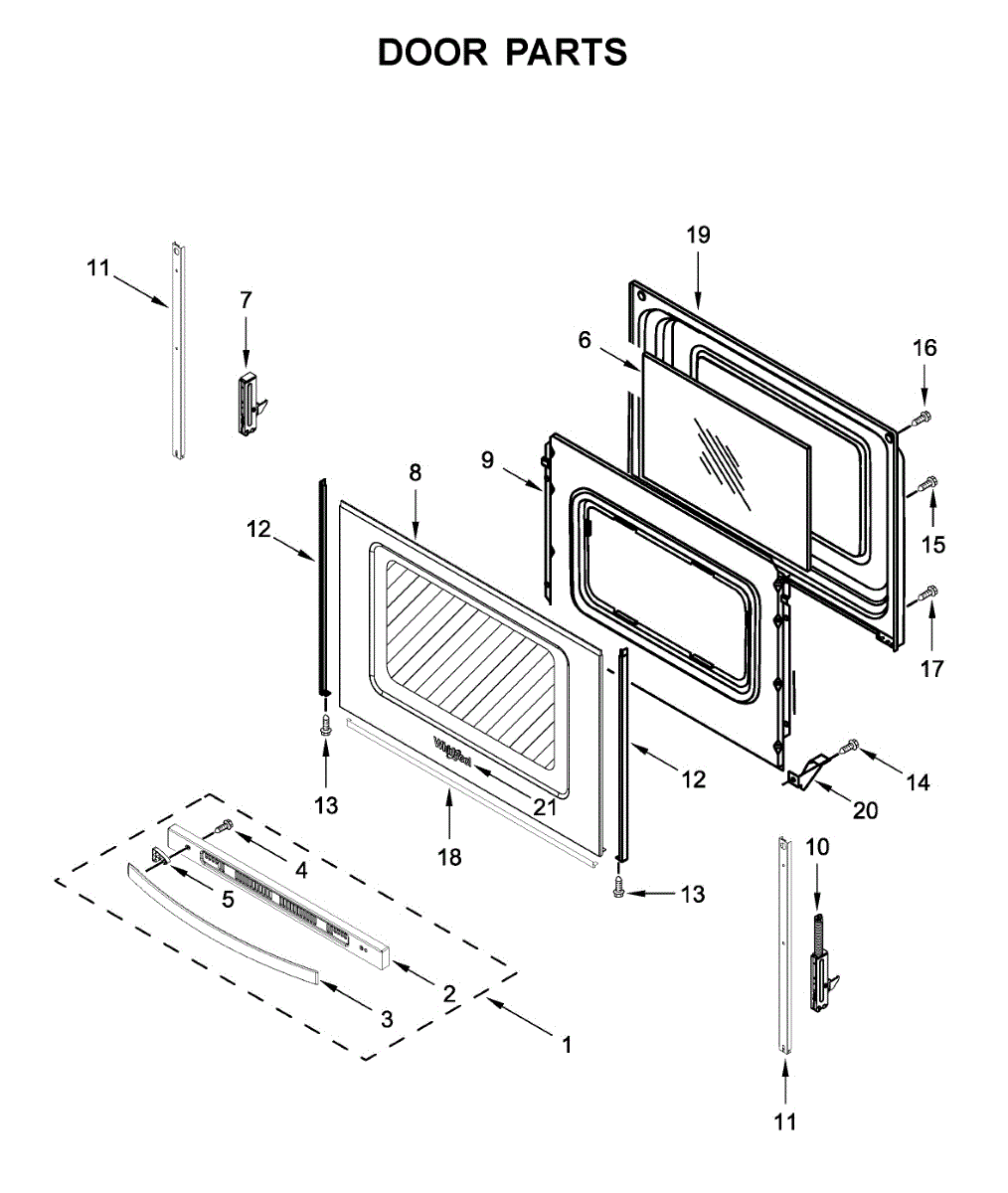 Parts for Whirlpool YWFC150M0JB0: Door Parts