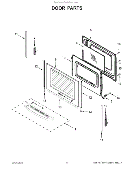 The Door Trim is an OEM replacement part for Whirlpool ranges. It covers the outer edge of the oven door, protecting it from wear and dust while retaining heat and improving aesthetics.