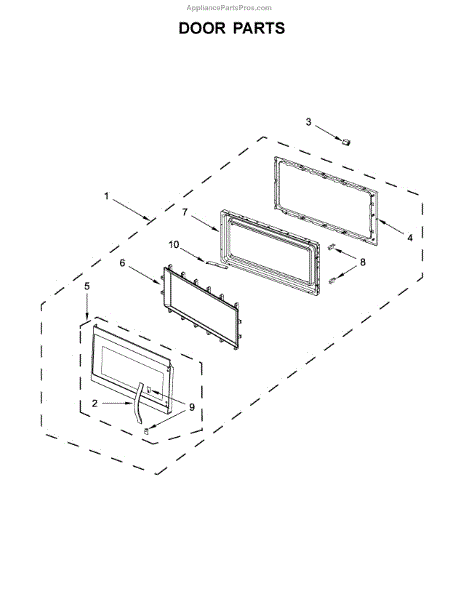 Replacement outer door assembly for microwaves. Installs on front of unit. Needed when original door is cracked, broken, or damaged. Direct fit part.