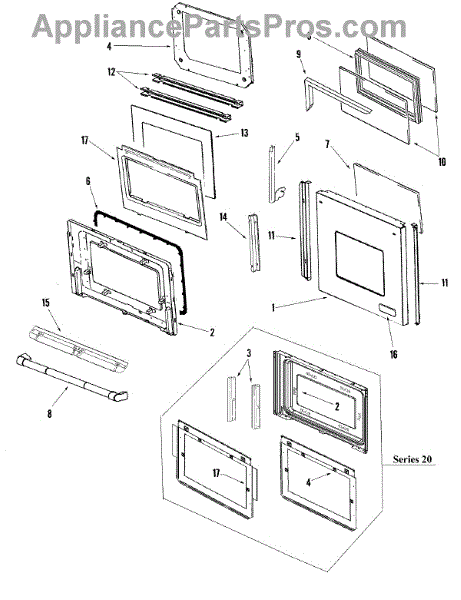 Size: 20 5/8 inches x 13 1/8 inches. For the glass measuring 22 3/8 inches x 14 inches order 74004857 Causes of a bad oven inner door glass can include small cracks or chips developing from regular door openings/closings, or microscopic defects that enlarge under repeated thermal cycling. Damage from accidental impacts is also possible. Symptoms of a bad Oven Inner Door Glass include: