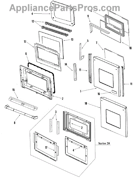 Size: 20 5/8 inches x 13 1/8 inches. For the glass measuring 22 3/8 inches x 14 inches order 74004857 Causes of a bad oven inner door glass can include small cracks or chips developing from regular door openings/closings, or microscopic defects that enlarge under repeated thermal cycling. Damage from accidental impacts is also possible. Symptoms of a bad Oven Inner Door Glass include: