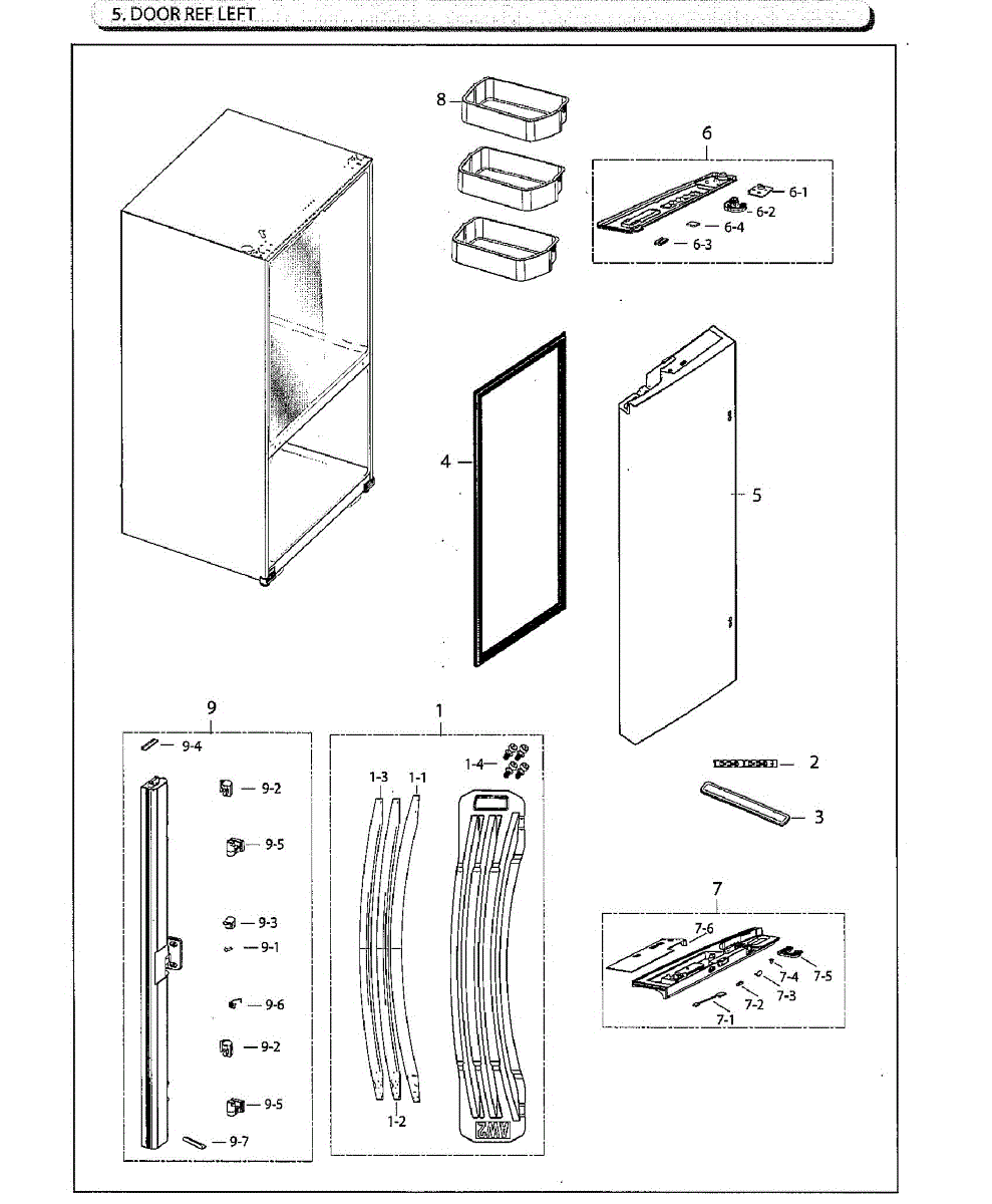 Insulation foam assembly for refrigerator left door. Replaces worn, compressed, or damaged door foam that reduces cooling efficiency and increases energy use.