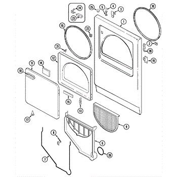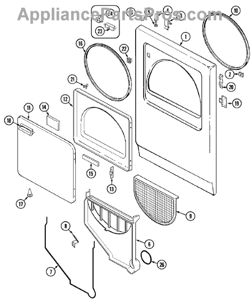 Traps lint and debris during drying to prevent vent clogs and maintain airflow. Replace when damaged, torn, or has holes. Verify fit with your model.