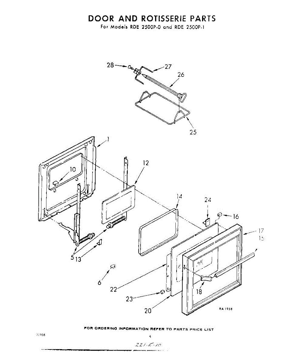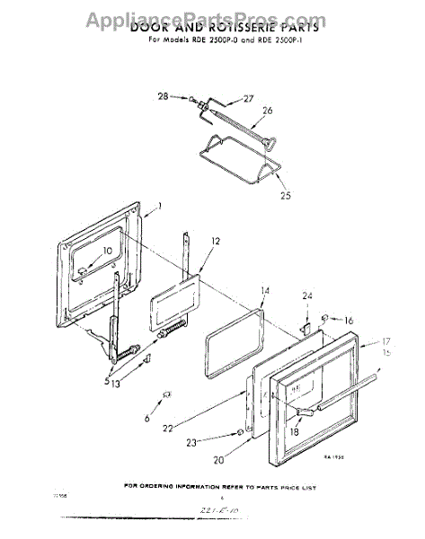 Parts for Whirlpool RDE2500P0: 04 - Door And Rotisserie Parts