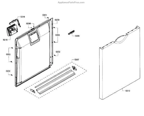 The door-outer is responsible for the overall appearance and aesthetic of the dishwasher door. It gives the door its distinctive look and houses all internal mechanisms.