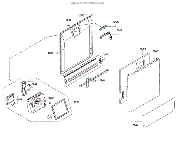 This inner door panel replaces a damaged or worn dishwasher door interior to restore proper door fit and help prevent leaks and rattling. It fits behind the outer door and supports the latch and internal components. What it does