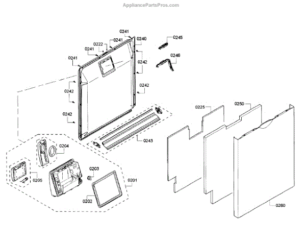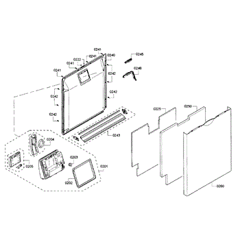 The Dishwasher Inner Door Panel is an OEM part for Bosch dishwashers. It is located inside the dishwasher door and protects internal components.