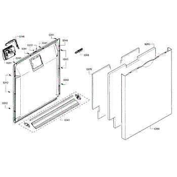 The Dishwasher Inner Door Panel is an OEM part for Bosch dishwashers. It is located inside the dishwasher door and protects internal components.