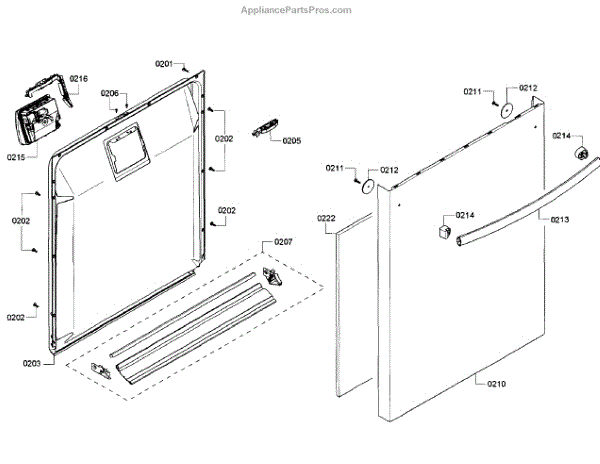 The Dishwasher Inner Door Panel is an OEM part for Bosch dishwashers. It is located inside the dishwasher door and protects internal components.