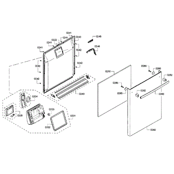 The Dishwasher Inner Door Panel is an OEM part for Bosch dishwashers. It is located inside the dishwasher door and protects internal components.