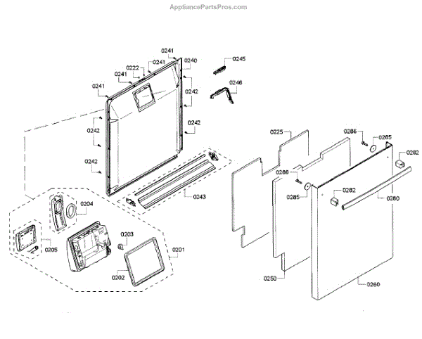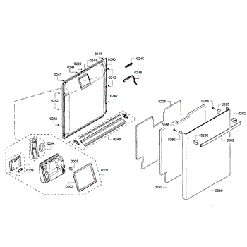 The Dishwasher Inner Door Panel is an OEM part for Bosch dishwashers. It is located inside the dishwasher door and protects internal components.