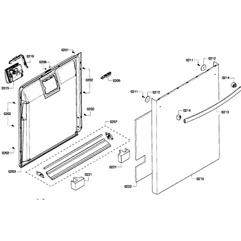 The Dishwasher Inner Door Panel is an OEM part for Bosch dishwashers. It is located inside the dishwasher door and protects internal components.