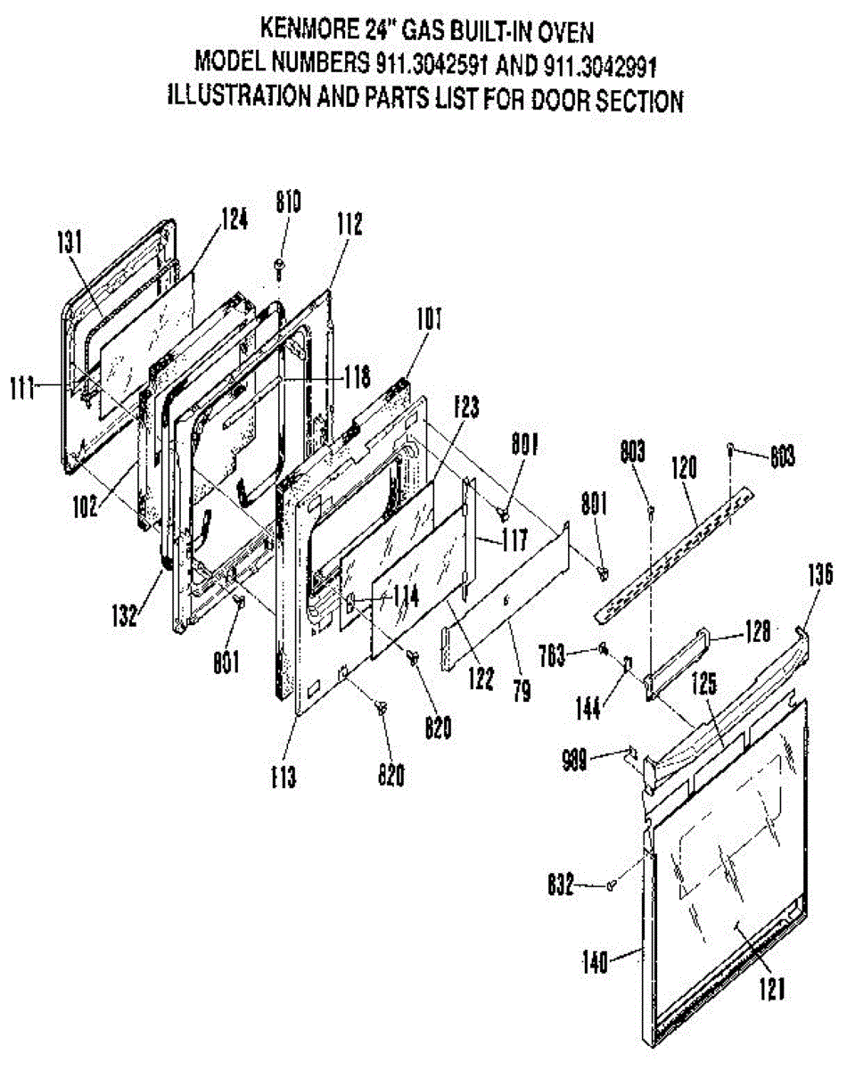 Center glass panel for oven door. Installs between inner and outer door panels. Replace if cracked, broken, or heat-damaged for safety and visibility.