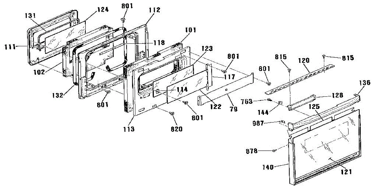 Center glass panel for oven door. Installs between inner and outer door panels. Replace if cracked, broken, or heat-damaged for safety and visibility.