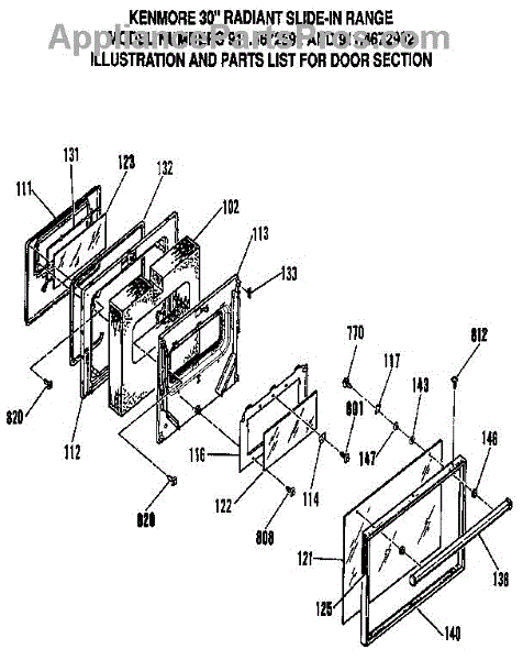 Parts for Kenmore 911.4672992 (9114672992, 911 4672992): Door Section Parts