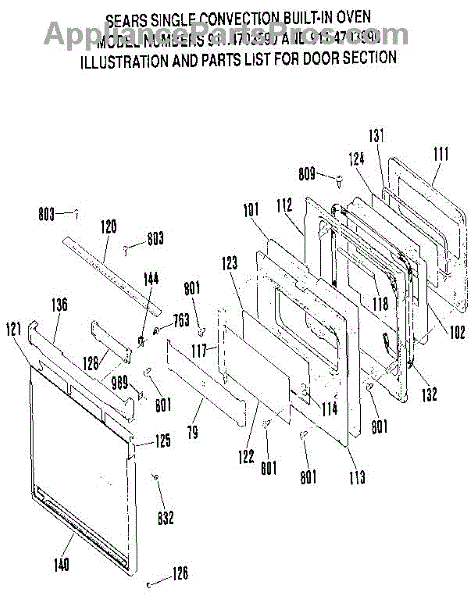 Parts for Kenmore 911.4703990 (9114703990, 911 4703990): Door Section Parts
