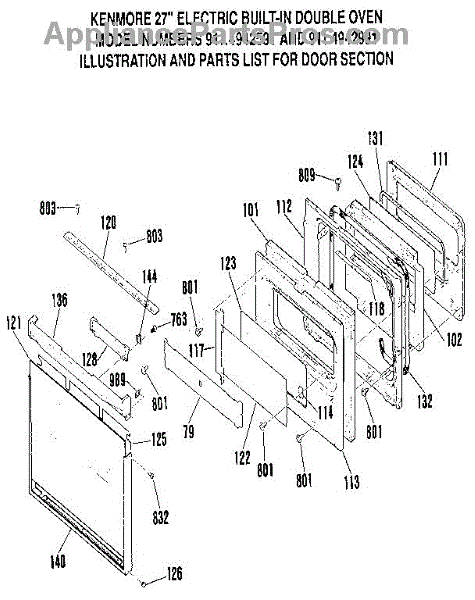 Parts for Kenmore 911.4942991 (9114942991, 911 4942991): Door Section Parts