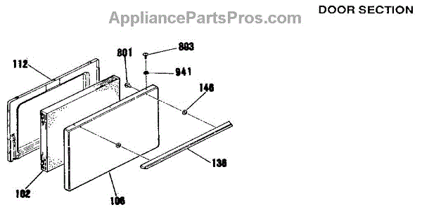 Parts for Kenmore 911.6208812 (9116208812, 911 6208812): Door Section Parts