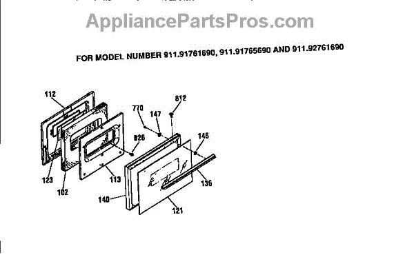 Parts for Kenmore 911.91468690 (91191468690, 911 91468690): Door Section Parts