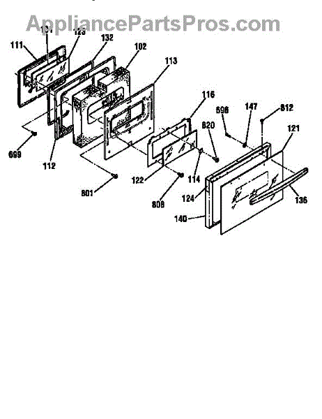 Parts for Kenmore 911.9554991 (9119554991, 911 9554991): Door Section Parts