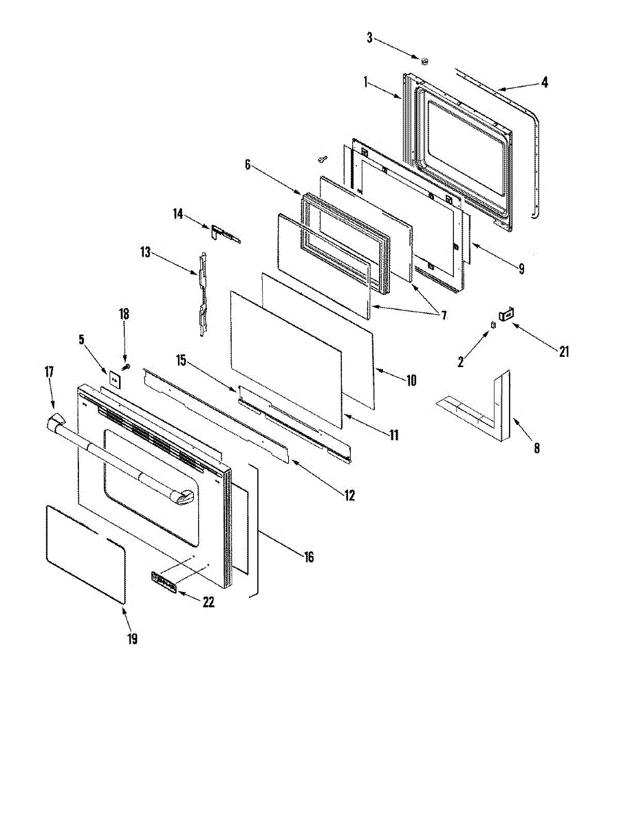 Size: 20 5/8 inches x 13 1/8 inches. For the glass measuring 22 3/8 inches x 14 inches order 74004857 Causes of a bad oven inner door glass can include small cracks or chips developing from regular door openings/closings, or microscopic defects that enlarge under repeated thermal cycling. Damage from accidental impacts is also possible. Symptoms of a bad Oven Inner Door Glass include: