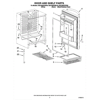 Parts for Kitchenaid KBCA06XPBL00: 02 - Door And Shelf Parts