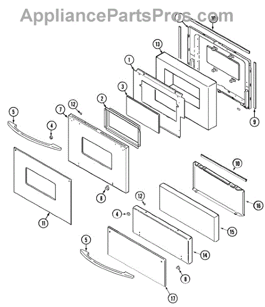 This spacer fits between the inner and outer oven door glass panels to help maintain the correct gap and alignment for safe operation. It replaces a missing or damaged spacer to restore proper door assembly and appearance. What it does:
